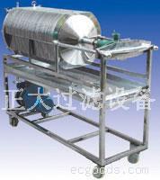 本机除配用电机外,其它机件均采用1Cr18Ni9Ti或316L优质耐腐蚀不锈钢材料制成,适用于过滤各种PH值酸碱溶液,本机应用加压密闭过滤,滤液损耗少,过滤质量好,效率高。过滤部分由十层滤板组成,过滤面积大,流通量大;且可根据被滤溶液之不同生产工艺(初滤、半精滤、精滤)要求,更换不同滤膜、及根据用户生产流量之大小可适当减少或增加滤板层数,使之适合生产之需要,因此本机具有一机多用适用范围广之特点;滤板采用平面螺纹网状形,结构先进,不变形,容易清洗,能有效地增长各种滤膜的使用寿命,从而降