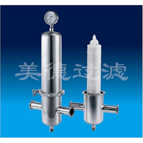滤芯采用疏水性聚四氟乙烯或聚丙烯折叠式微孔滤膜。滤器为优质进口不锈钢(304/316L),按GMP标准设计制造,高效、节能、安全、可靠,广泛用于发酵空气,针剂用空气、惰性气体的净化(可作为总空气过菌器、分过滤器)、蒸馏水罐的“呼吸器”。除菌气体过滤器是专为制药工业,食品工业的贮罐气体交换时达到除菌之目的而设计制造的。气体过滤精度为0.02μm微粒,效率达到99.99%。过滤能力可在0.1-100m³/min范围内选用。介质厚度仅为0.8mm,孔径均匀稳定、气体阻力小、再生方便。滤芯在一般情况下可使用二至三年,再生后可延长到四至六年。也可用于灭菌蒸汽的过滤。此过滤器可彻底解决空气的染菌问题,而且可提高消毒灭菌的质量,从而达到GMP和无菌卫生要求。