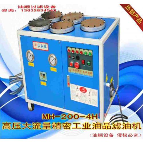 液压油精密滤油机以精密的滤油器数个并联配管,再配备泵浦马达,真空表,压力表,及吸入过滤网,电磁开关,铁架等组成,自成一个过滤系统,且具备轮子方便移动使用。适合作集中过滤或同一油类的各式机械轮流过滤,过滤过程简单,效果好(一次可达NAS6级)经济实惠,范围广。