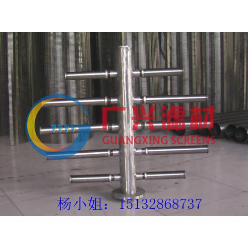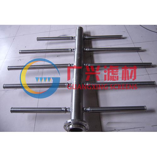 不锈钢梯形绕丝滤网支管系统采用不锈钢梯形绕丝管式滤元作中排器件,可替代不锈钢管上开孔再包涤纶网套老式支管,流通面积大、布水均匀、机械强度高,耐温性、耐压性、抗老性、抗腐蚀性都得到极大提高。并且可以依据树脂大小进行设计。而且采用我公司生产的不锈钢梯形绕丝中排后,不仅设备使用寿命长,运行安全可靠,而且大大降低了检休工作量,包括材料树脂耗损等费用。