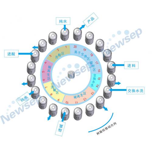 整个维生素 C 的生产过程可以分为四大部分,即发酵(山梨醇两步发酵为古龙酸)、提取(古龙酸从发酵液中分离出来)、转化(古龙酸转化为维生素 C)和精制(维生素 C 纯化)。运用组合膜系统对古龙酸钠发酵液进行预处理后,运用连续离子交换技术,脱除钠离子,实现Vc-Na的连续转换。