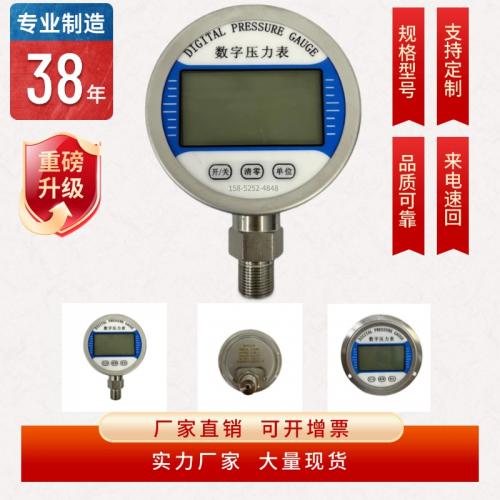 国际品质,支持国货,要用就用中国人自己的!数字压力表是采用单片机控制的在线测量仪表。它采用电池长期供电方式、无需外接电源,安装使用方便。它从根本上克服了指针式压力表精度低、可靠性差、损坏率高等诸多缺点。尤其在腐蚀、振动等场所使用,更显其超凡性能。