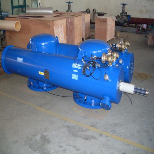全自动自清洗过滤器是一种利用滤网中的杂质,去除水体悬浮物、颗粒物,降低浊度,净化水质,减少系统污垢、菌藻、锈蚀等产生,以净化水质及保护系统其他设备正常工作的精密设备。水由进水口进入全自动过滤器机体, 由于智能化(PLC、PAC)设计,系统可自动识别杂质沉积程度,给排污阀信号自动排污。克服传统过滤产品的纳污量小、易受污物堵塞、过滤部分需拆卸清洗且无法监控过滤器状态等众多缺点,具有对原水进行过滤并自动对滤芯进行自动清洗排污的功能,且清洗排污时系统、无需旁路的特点,且清洗时间短,排污耗水量少。技术指标:①过滤流量:≤600m³/h; ②压力:≤4.0MPa;③过滤精度:50um;④噪声:≤60dB(A);⑤配套电机功率:0.75~15KW