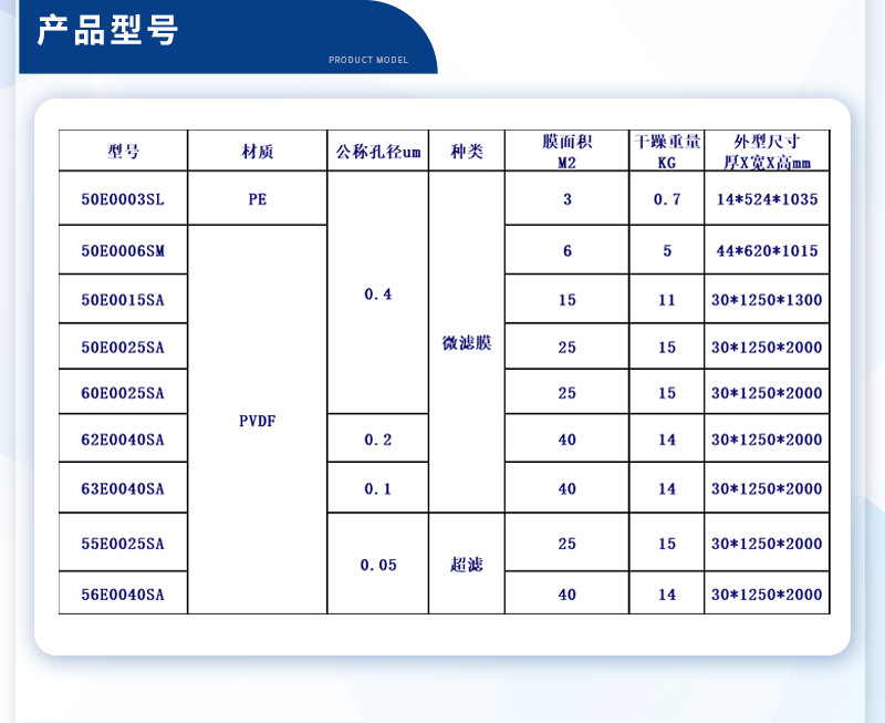 膜丝孔径:0.4μm
