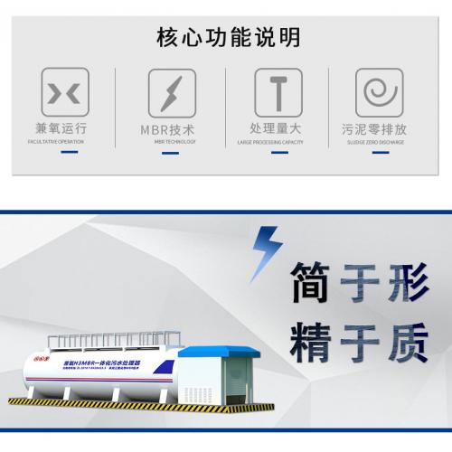 基于兼氧H3MBR一体化技术高度标准化、装备化、智能化等***,公司创了“恒大智慧云平台”的远程运维管理模式,能靠近产品、靠近现场、靠近客户,实现管理的属地化,在快速响应运维需求的同时,能帮助客户收集信息并及时反馈客户需求,整体设备集成式一体化,PLC编程逻辑控制器自动化控制,设备地上式,外观简洁、大方,可用于景观装饰。
