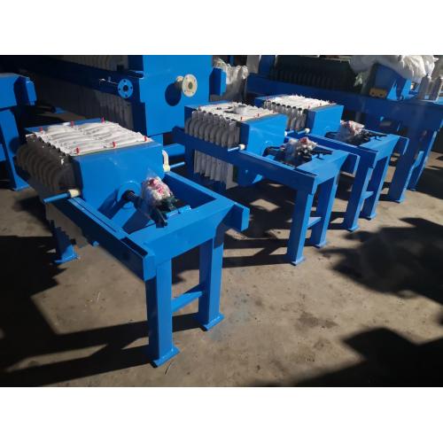 板与框相间排列而成,在滤板的两侧覆有滤布,用压紧装置把板与框压紧,即在板与框之间构成压滤室。在板与框的上端中间相同部位开有小孔,压紧后成为一条通道,加压到0.2~0.4MPa的污泥,由该通道进入压滤室,滤板的表面刻有沟槽,下端钻有供滤液排出的孔道,滤液在压力下,通过滤布、沿沟槽与孔道排出滤机,使污泥脱水。国内外已开发出自动化的板框压滤机。板框压滤机比真空过滤机能承受较高的污泥比阻,这样就可降低调理剂的消耗量,可使用较便宜的药剂(如FeSO4·7H2O)。当污泥比阻为5×1011~8×1012m/kg时,可以不经过预先调理而直接进行过滤。板框压滤机其泥饼产率和泥饼含水率,应根据试验资料或类似运行经验确定。泥饼含水率一般可为75%~80%。