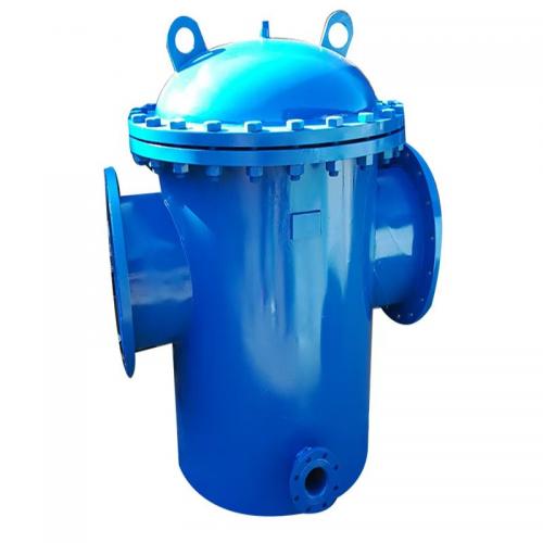 篮式过滤器是除去液体中少量固体颗粒的小型设备,可保护压缩机、泵、仪表和其他的 正常工作,目前已应用于石油、化工、医药、食品、环保等行业。若将其串连的安装在泵 的入口或系统管线的其他部位,则既可以延长泵和其他设备的使用寿命,又能保证整个系 统的安全。 篮式过滤器主要由接管、主管、滤篮、法兰盖及紧固件等组成,当流体通过主管进入滤 篮后,固体杂质颗粒被阻挡在滤篮内,而洁净的流体通过滤篮由过滤器出口排出。当需要 清洗时,旋开主管底部螺塞,排净流体,拆卸法兰盖,取出滤篮。清洗后重新装入即可, 因此,使用维护方便。