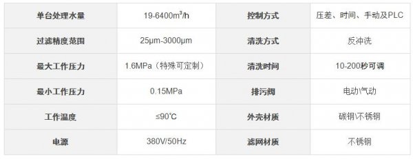DLSF多滤芯自动反冲洗过滤器具有区别于普通网式自清洗过滤器的突出优势,单机超大过滤面积(180000cm2),单机大流量可达10000m3/h,小的反冲洗耗水量(小只25L),可低表面流速精细过滤,高可靠性,可胜任较恶劣水质,如含油泥状杂质、软性粘性杂质,较高杂质含量,少量毛发及纤维类杂质。